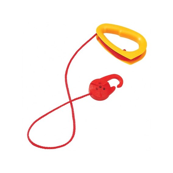 BIG Czerwona Lina holownicza z żółtym uchwytem pasuje do wszystkich pojazdów. BIG Bobby Car wyposażonych w uchwyt holowniczy. Łatwo się także mieści w kieszeni, gdy nie jest używana.