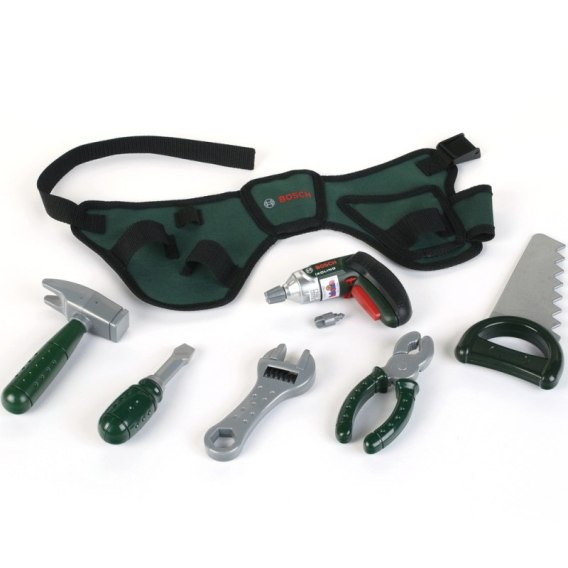Pas z narzędziami dla dzieci od firmy Klein, cenionego producenta zabawek dla dzieci, to idealny pomysł na prezent. Wspaniały zielony pas z narzędziami na licencji Bosch to propozycja świetnej i kreatywnej zabawy dla najmłodszych miłośników majsterkowania. Pas wyposażony jest w narzędzia, które z pewnością przydadzą się małym majsterkowiczom.