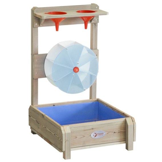 Zabawka Wodna dla dzieci od renomowanej marki Classic World to idealne dopełnienie twojej piaskownicy! Produkt jest wyprodukowany z wysokiej jakości drewna, pomalowany nietoksycznym impregnatem, w pełni bezpiecznym dla dzieci. Po prostu napełnij lejki wodą i obserwuj jak spływa do kołowrotka powodując jego kręcenie. Produkt rozwija dzieciomwyobraźnię, percepcję i logiczne myślenie.