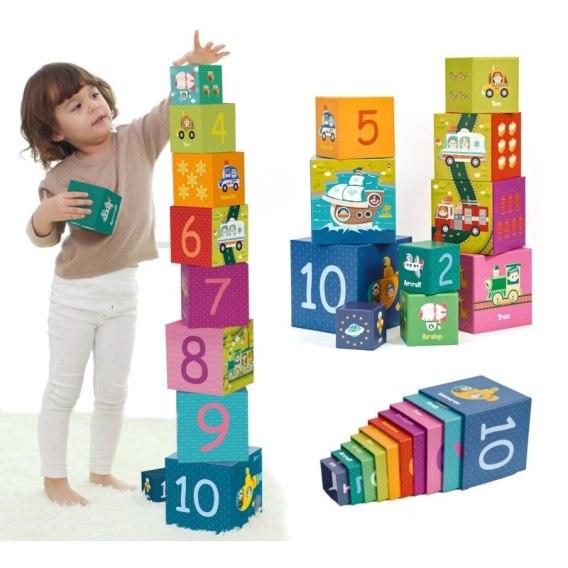 Kolorowe Kostki marki CLASSIC WORLD przedstawiające transport w języku angielskim. Zestaw składa się z dziesięciu sześciennych kostek. To wspaniałe dla dzieci, aby budować i uczyć się cyfr od 1 do 10, rozmiarów, kolorów i nazw transportu. Można je układać na różne sposoby z frajdą dla malucha! Produkt wykonany z myślą o małych rączkach dziecka. Zabawka przyjazna dla środowiska i dziecka.