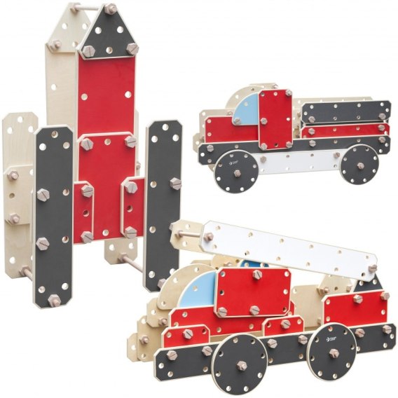 CLASSIC WORLD Drewniane Klocki Konstrukcyjne - Zestaw dużych klocków Czerwone Pojazdy jest to komplet ogromnych klocków drewnianych, składający się z 99 elementów, z których możemy zbudować z naszą pociechą różne pojazdy lub statki kosmiczne. Doskonały produkt do spełnienia marzeń każdego fana motoryzacji. Zestaw można składać według dołączonych instrukcji lub wedle wyobraźni naszej i dziecka. Zestaw należy złożyć z osobą dorosłą. Produkt rozwija kreatywność i wyobraźnię naszego dziecka. Zabawa klockami ma pozytywny wpływ na rozwój dzieci. Oddziałuje na ich koncentrację, poprawia koordynację wzrokowo - ruchową, kształtuje umiejętność planowania i umiejętności manualne, dodatkowo uczy też orientacji przestrzennej, precyzji, a także ćwiczy zmysł równowagi! Świetnie sprawdzą się również do nauki pracy zespołowej. Klocki zbudowane z najwyższej jakości drewna i pomalowane nietoksycznymi farbami. Idealnie sprawdzą się do użytku domowego jak również w każdej placówce wczesnoszkolnej. Przeznaczone dla dzieci powyżej 3 roku życia.