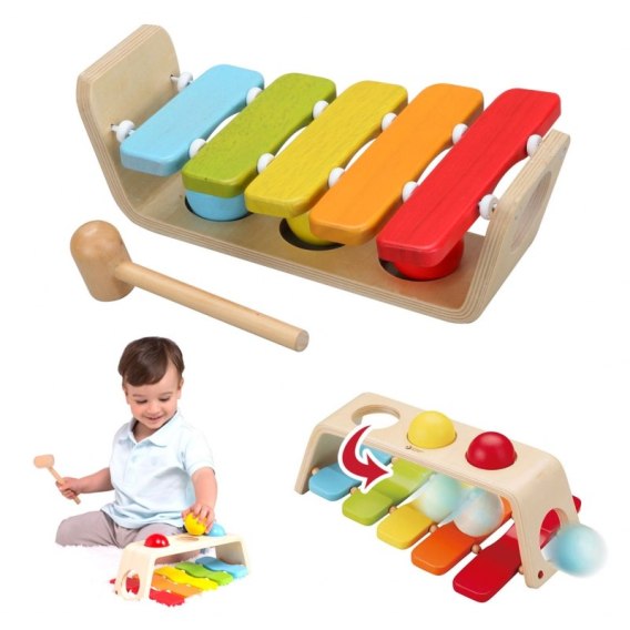 - - Zabawka, która łączy w sobie 2 funkcje - są to jednocześnie cymbałki, oraz przybijanka z młoteczkiem.