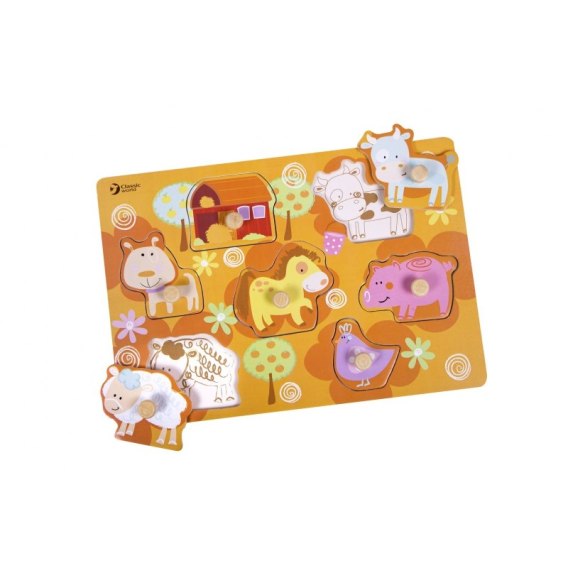 Drewniane Puzzle od Classic World dla dzieci od 18 miesiąca życia to idealne rozwiązanie do domu, jak i do przedszkola. Składa się z planszy, oraz 7 elementów ze zwierzątkami, które należy do niej dopasować. Na drewnianej podstawce znajdują się wgłębienia, które swoim kształtem odpowiadają kolorowym puzzlom. Dzięki zabawce dziecko rozwija koordynację wzrokowo-ruchową.