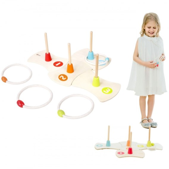 Świetna, zręcznościowa gra Rzutki renomowanej marki Classic World. Sprawdzi się jako urozmaicenie każdej imprezy, do zabawy zarówno w domu, jak i na dworze. Ta mobilna gra to ćwiczenie zręczności z odrobiną rywalizacji. To co decyduje o wyjątkowości tej gry to wysokiej jakości wykonanie z ekologicznych materiałów. Gra składa się z 4 elementów służących za podstawę, elementy nie są ze sobą trwale złączone co sprawia, że sami decydujecie jak chcecie je ułożyć. Można w kwadracie lub podłużnie. Dzięki mobilności poszczególne elementy możecie też wykorzystać do innych zabaw ruchowych na dworze.