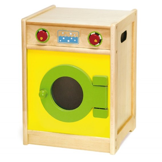 Dzieci uwielbiają naśladować zachowania dorosłych, dlatego sprzęty gospodarstwa domowego często stają się ulubioną zabawką. Ceniony producent zabawek drewnianych, marka Viga Toys wyszła na przeciw oczekiwaniom najmłodszych. Żółta pralka z otwieranym bębnem i obrotowymi pokrętłami idealnie sprawdzi się jako wyposażenie przedszkoli i sal zabaw. Wysokiej jakości, solidne drewno kauczukowe o zwartej strukturze zostało pomalowane nietoksycznymi farbami o intensywnych kolorach.
