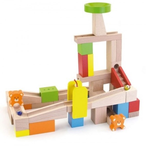 Budowla Kulodrom, składająca się z wysokiej jakości drewnianych, naturalnych bloczków, oferuje naszym małym architektom wiele możliwości kreatywnej i odkrywczej oraz pomysłowej zabawy. W zestawie znajdują się 10 kart przedstawiających kombinacje ustawień kulodromu, o różnym poziomie trudności. Spróbujcie zbudować tor przedstawiony na karcie lub stwórzcie własną fantastyczną konstrukcje z 49-ciu elementów! Zestaw zawiera schodki i misie zapewniające dodatkową atrakcje dla twojej pociechy. Całość zapakowana w wygodne wiaderko z uchwytem, ułatwiające bezpieczne przechowywanie części oraz przenoszenie zabawki.