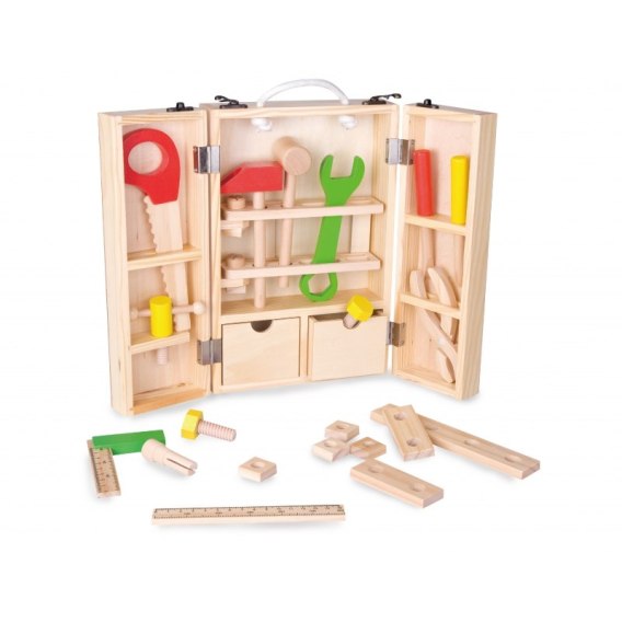 Drewniany Zestaw Narzędzi Classic World to świetny pomysł na prezent dla małego majsterkowicza. Od teraz każdy maluch będzie miał wszystko co mu potrzebne do reperowania, skręcania, zbijania i wszelkich prac remontowych. Gwarantuje super zabawę - dołączone elementy można ze sobą łączyć, za pomocą dołączonych do zestawu narzędzi. Produkt zwiększa zdolności poznawcze - dziecko poznaje narzędzia i ich zastosowanie, rozwija wyobraźnie maluszka, poprawia zdolności manualne.