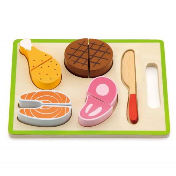 Bezpieczny i kreatywny Drewniany Zestaw obiadowy do krojenia na tacy składający się kawałków połączonych ze sobą na rzepy od firmy Viga to jedna z czołowych zabawek, która będzie służyła długo i zapewni Twojemu dziecku wiele lat ciekawej i kreatywnej zabawy. Kolorowy obiadek cieszy oko i zachęca do zabawy. Zabawka zapewni cudowną zabawę podczas każdego przyjęcia dla misia, laleczki czy koleżanki z przedszkola.