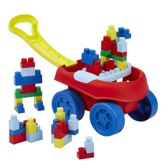 - - Zestaw posiada kółka i wygodny uchwyt, dzięki temu łatwo przewozić klocki.