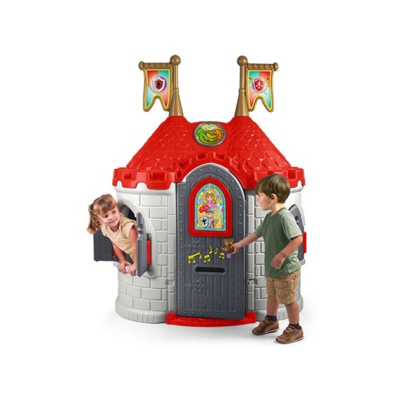 FEBER Domek ogrodowy urządzony w stylu średniowiecznego zamku, idealny dla małych księżniczek i ich książąt! Stylizowany na budowlę z białych cegieł, z czerwonym dachem. Okna i drzwi są w odcieniu szarości. Okiennice otwierają się na zewnątrz, gałka od drzwi jest ruchoma. Całości dopełniają tematyczne grafiki umieszczone na drzwiach, dachu i chorągwiach! Zamek zachwyci każdego malucha oraz sprawi, że zabawy nie będzie końca. Nasza pociecha będzie mogła tworzyć własne historie dla bohaterów zabawy, dzięki czemu pobudzi wyobraźnie oraz kreatywność.