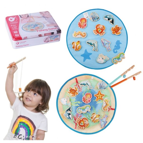 Kolorowy zestaw do łowienia rybek od Classic World to wspaniała zabawka. W zestawie znajdują się drewniane figurki przedstawiające morskie stworzenia oraz materiałowa podkładka, na której układa się morskie stworzenia tak aby były dopasowane do wzorku na macie. Przenieś się w podwodny świat morskich stworzeń. Zestaw idealny dla całej rodziny! Wielogodzinna zabawa gwarantowana!