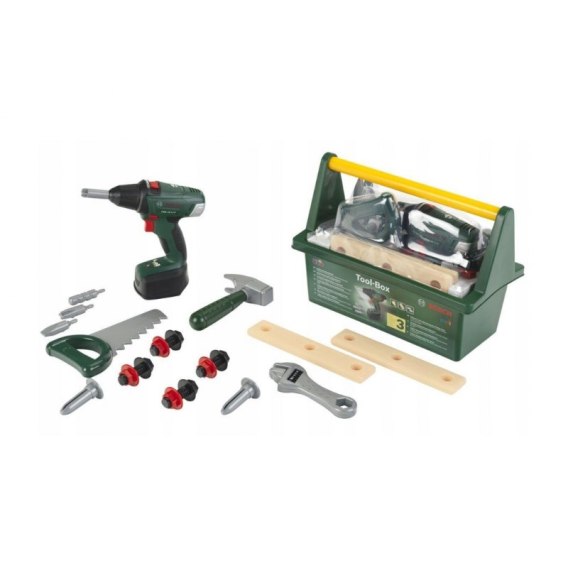 Wśród narzędzi dzieci odnajdą bezprzewodową wkrętarko-wiertarkę na baterie z czterema wymiennymi końcówkami. Wkrętarko-wiertarka doskonale naśladuje prawdziwe urządzenie Bosch, dzięki dźwiękom oraz obrotowemu wkrętowi.
