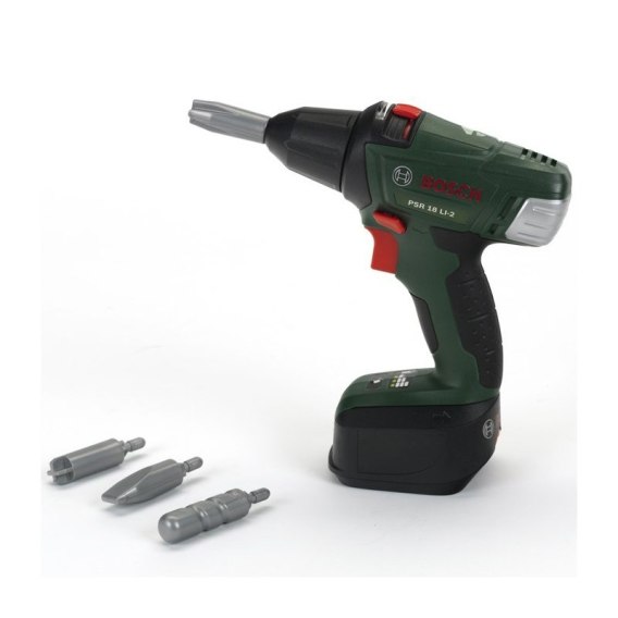 Wiertarko- wkrętarka dla dzieci na licencji Bosch od firmy Klein, cenionego producenta zabawek dla dzieci, to idealny pomysł na prezent. Bezprzewodowa wiertarko- wkrętarka zachowana jest w kolorystyce ciemnej zieleni z szarymi elementami. Taka wkrętarka z pewnością będzie stanowiła świetne uzupełnienie każdego warsztatu Małego Majsterkowicza. Na urządzeniu znajduje się duży, czerwony napis producenta BOSCH.