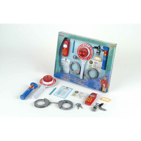 Zestaw Małego Policjanta z Lizakiem od firmy Klein, cenionego producenta zabawek dla dzieci, z pewnością będzie stanowił idealne uzupełnienie stroju każdego policjanta. Różnorodność i ilość akcesoriów z zestawu daje wiele możliwości oraz szansę wykazania się naszemu dziecku jako funkcjonariusz na służbie. W zestawie znajdziemy takie rzeczy jak srebrne kajdanki z kluczykiem, które ułatwią schwytanie "przestępcy". Srebrny gwizdek, który może przydać się do pościgów sprawiając przy tym wiele zabawy. W pełni funkcjonalną latarkę o kolorze niebieskim oraz kilka inny akcesoriów.