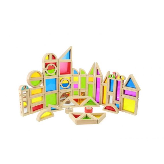 Zestaw niesamowitych klocków z kolorowymi szkiełkami akrylowymi. Drewniane klocki pozwalają na stworzenie cudownych konstrukcji, które będą tym ciekawsze, że będzie można przez nie patrzeć i widzieć kolorowo.