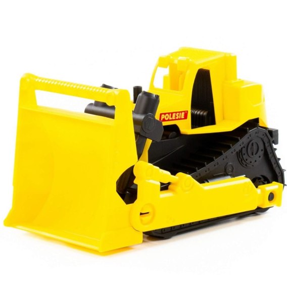 a dziecko może również zmieniać kąt nachylenia łyżki ze względu na ruchome elementy. Ruch zabawki zapewniają cztery koła, które są ukryte za imitacją gąsienic. Spychacz wygląda całkiem realistycznie: w kabinie znajduje się siedzenie i panel sterowania.