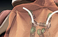 Poduszki oraz mechanizm wykonują głęboki masaż lędźwi. Mechanizm masażu w fotelu potrafi zjechać bardzo nisko sięgając do najniżej położonych partii kręgosłupa.