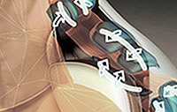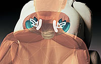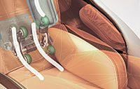 Dzięki doskonałemu wyprofilowaniu fotela mechanizm masażu pleców w ich górnym odcinku wysuwa się w przód wykonując przenikliwy masaż ramion.