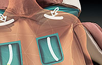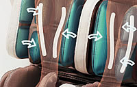 Boczna i górna poduszka powietrzna wykonują ucisk shiatsu od zewnątrz, a dodatkowa trzecia poduszka powietrzna w oparciu podtrzymuje bark podczas masażu.