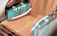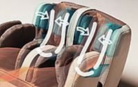 Boczne panele masują obie strony pośladków eliminują zmęczenie występujące w udach i pośladkach. Poduszki powietrzne w siedzisku wzmacniają efekt o ujędrnianie skóry ud.