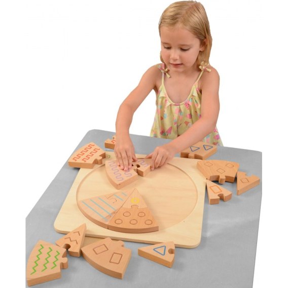 Zestaw do sortowania i odnajdywania par marki Masterkidz to jedna z najgenialniejszych zabawek tego producenta. Dziecko nie tylko ma niesamowitą frajdę z zabawy, ale również cudownie się rozwija. Zabawa polega na odnajdywaniu pasujących do siebie par klocków. Drewniane elementy posiadają po obu stronach wytłoczone, oraz namalowane wzory. Sortowanie może się zatem odbywać przy pomocy wzroku, dotyku, lub obu zmysłów. Jest to niezwykle kształcące i rozwijające. W wieku ok. 3 lat rozwój zmysłów jest bardzo ważny, gdyż dziecko bardzo szybko odkrywa świat i chce to robić przy pomocy jak największej ilości bodźców.