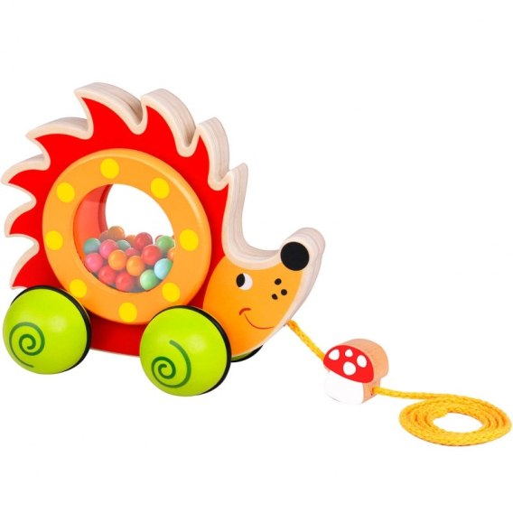 Drewniany Jeż od Tooky Toy ma kółka i sznureczek do ciągnięcia. Dziecko, które opanowało zdolność samodzielnego chodzenia może zabrać zabawkę na spacer a dla maluszka, który dopiero uczy się stawiać pierwsze kroczki będzie idealną motywacją do nauki chodzenia. Podczas spaceru komora z kuleczkami znajdująca się w brzuszku Jeża obraca się. Szeroki rozstaw kółeczek zapewni zwierzakowi stabilność dzięki czemu nie wywróci się podczas podróży a jego piękne kolory z pewnością przyciągną uwagę malucha. Całość wykonana z trwałego drewna wysokiej jakości.