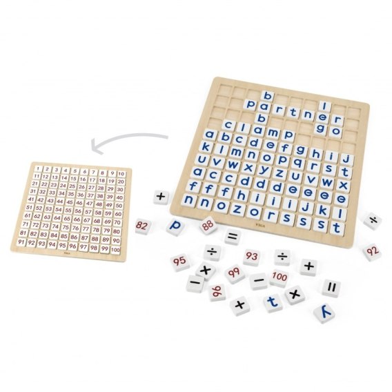 Edukacyjna Tablica od renomowanej marki Viga to idealny produkt do nauki alfabetu i działań matematycznych. Drewniana tabliczka posiada wgłębienia na 100 klocków z nadrukowanymi literami po jednej stronie, a po drugiej z liczbami i symbolami matematycznymi. Zabawka ćwiczy również ortografię i matematykę. Dzięki tak wielu kombinacjom, zabawka na długo będzie niezbędnym elementem zabawy!