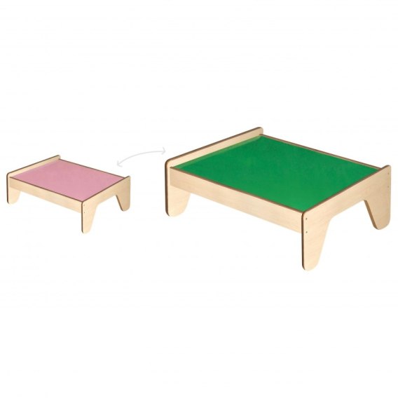 - - stół jest dwustronny - z jednej strony zielony (idealnie nadający się do zabawy kolejką), natomiast z drugiej strony różowy (sprawdzi się np. podczas zabawy klockami)