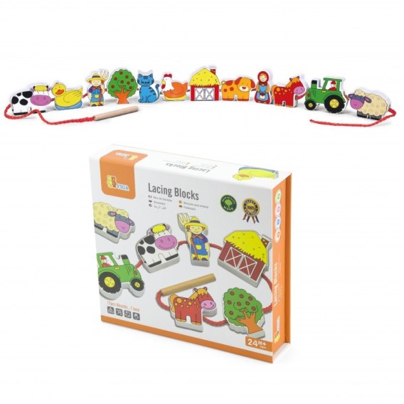 Viga Drewniana przeplatanka Klocki Farma do nawlekania