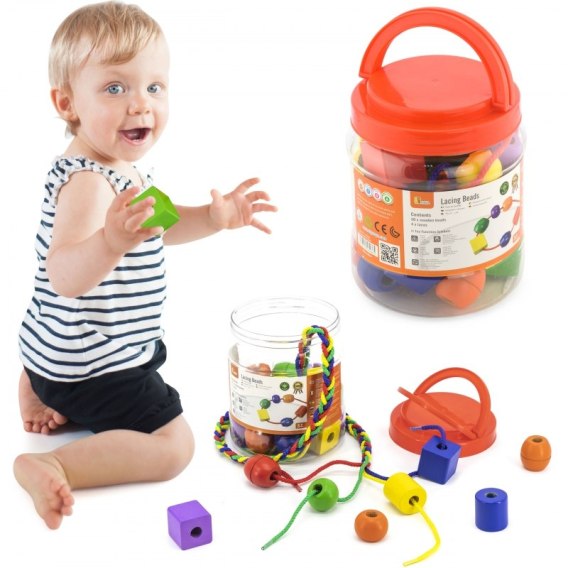 Viga Zestaw kolorowych koralików z drewna do nawlekania w słoiku