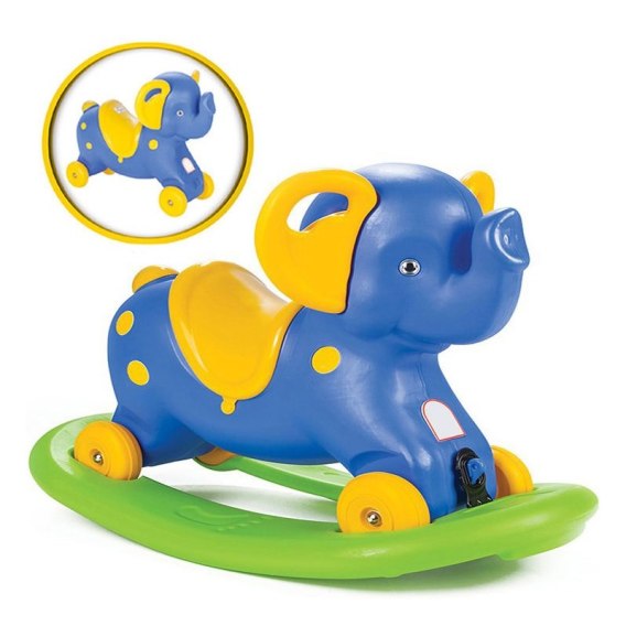 Niebieski Słonik na Biegunach to idealna zabawka dla dzieci od 3 roku życia. Podstawową jego funkcją jest bujak. Dodatkowo po wypięciu słonika z podstawy, dzięki zamontowanym w nóżkach kółkom, pełni funkcję jeździka. Uchwyty zamocowane na głowie słonika, dają poczucie bezpieczeństwa.