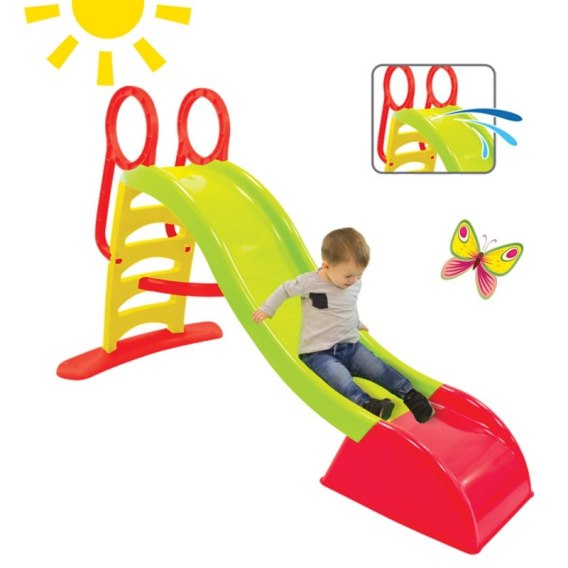 Duża Zjeżdżalnia Sunny marki Woopie posiada delikatny zjazd o długości 180 cm, który zapewni fantastyczną zabawę Twojemu dziecku. Do zjeżdżalni może zostać przyłączony natrysk wodny, który jeszcze bardziej rozszerzy możliwości zabawy. Zjeżdżalnia posiada schodki antypoślizgowe i uchwyty, które wpłyną na bezpieczeństwo dziecka podczas zabawy. Szeroka podstawa sprawia, że zjeżdżalnia jest stabilna. Dzięki zastosowaniu wysokich ścianek ślizgu i zaokrąglonych krawędzi, zjeżdżalnia jest bezpieczna dla mniejszych dzieci.