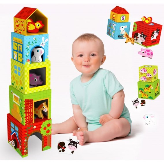 • - kostki są ilustrowane w logiczny sposób rozwijający percepcje dziecka - od najmniejszego do największego oraz ponumerowane zgodnie z wielkością