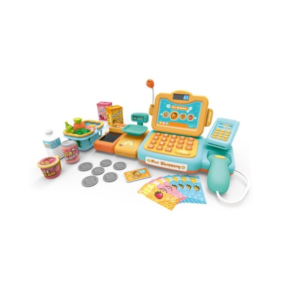 Kasa Sklepowa z wieloma dodatkami od Woopie to idealny pomysł dla dzieci powyżej 3 roku życia. Zabawka rozwija wyobraźnię dzieci i zachęca je do kreatywnego myślenia. Dzieci mogą ważyć owoce i warzywa, a następnie wbić je za pomocą klawiatury do komputera. Przy pomocy czytnika zeskanują paczkę ciasteczek lub butelkę wody. Następnie będą mogły zapłacić na dwa sposoby: tradycyjnie za pomocą pieniążków, karty płatniczej. Wszystko to jest dołączone do zestawu i zapewni dziecku długie godziny fajnej zabawy.