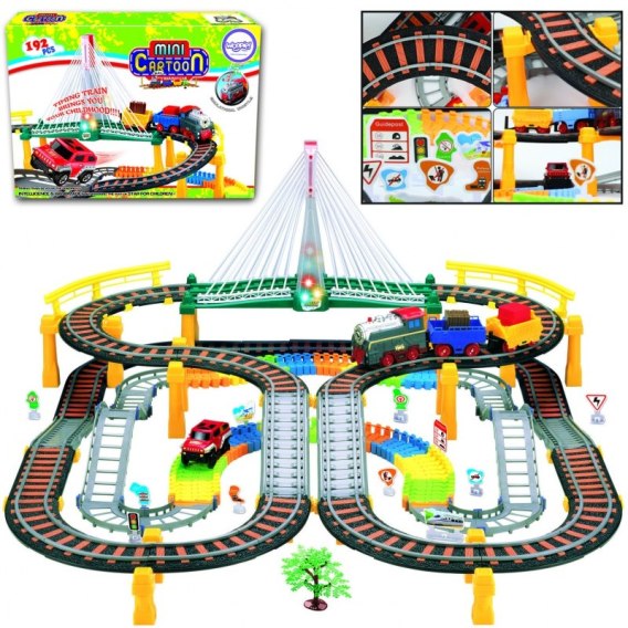 - - dwupoziomowa kolejka z wiaduktem/mostem i tor wyścigowy - aż 192 elementy,