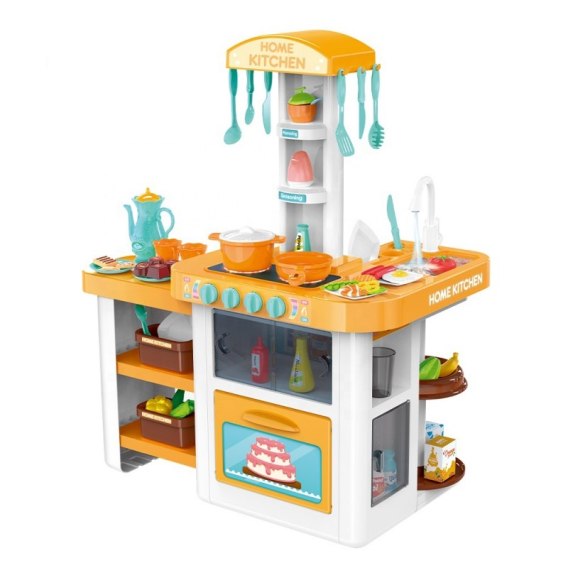 Kuchnia Domowa renomowanej marki Woopie jest wszystkim czego potrzebuje młody kucharz. Zestaw posiada niezwykłe funkcje, w tym kran z prawdziwą wodą pozwolą poczuć się twojemu dziecku jak w prawdziwej kuchni. Dodatkowo maluch ma dostęp do każdego zakamarka w kuchni, dzięki otwieranemu piekarnikowi, otwieranej lodówce irozsuwanej szafce. Zacznij gotować na palniku, który świecić i wydaje dźwięki gotowania i smażenia. Z Do ich uruchomienia mamycztery pokrętła. Nad kuchnią znajduje się funkcjonalny „stojak", na którym można umieścić niezbędne akcesoria do gotowania i jedzenia (sztućce, filiżanki, łopatkę do smażenia, przepisy). Kuchnia posiada dwie półeczki, na których możemy umieścićpojemniczki z niezbędnymi do gotowania akcesoriami. W zestawie znajduje się wiele akcesoriów (ciastka, warzywa, mleko itp.), które sprawią, że twojemu dziecku nigdy nie znudzi się gotowanie przeróżnych potraw. Pamiętaj, że dzieci uwielbiają naśladować swoich rodziców, a odgrywanie ról niezwykle rozwija wyobraźnie i kreatywność malucha!