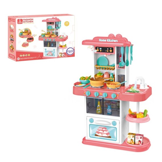 Kuchnia Domowa renomowanej marki Woopie jest wszystkim czego potrzebuje młody kucharz. Niezwykłe funkcje, w tym kran z prawdziwą wodą pozwolą poczuć się twojemu dziecku jak w prawdziwej kuchni. Dodatkowo maluch ma dostęp do każdego zakamarka w kuchni, dzięki otwieranemu piekarnikowiirozsuwanej szafce. Zacznij gotować na palniku, który świecić i wydaje dźwięki. Zestaw posiada okap z lampką, który po włączeniu może zagrać nam aż 12 różnych melodii. Z palników wydobywają siędźwięki i świecą światła. Do ich uruchomienia mamycztery pokrętła. Po włączeniu pierwszego pokrętła włącza się pierwszy palnik, świecą światła oraz z palnika wydobywa się para imitująca parującą wodę. Wszystkiego temu towarzyszy dźwięk gotującej się wody.Wiele akcesoriów (jajko, warzywa, mleko itp.) sprawi, że twojemu dziecku nigdy nie znudzi się gotowanie przeróżnych potraw. Pamiętaj, że dzieci uwielbiają naśladować swoich rodziców, a odgrywanie ról niezwykle rozwija wyobraźnie i kreatywność malucha!