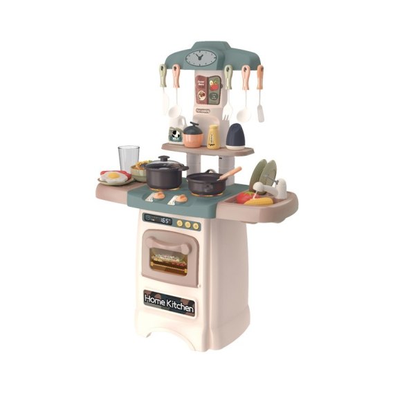 Modna Domowa Kuchnia marki Woopie jest wszystkim czego potrzebuję młody kucharz. Maluch może w pełni korzystać z każdego zakamarka w kuchni, dzięki otwieranym i ruchomym elementom, jak: piekarnik, kran czy pokrętła od kuchenki. Wiele specjalnych funkcji pozwoli dziecku poczuć się jak w prawdziwej kuchni. Młodu kucharz może gotować na palniku, który świecić i wydaje dźwięki podczas gotowania orazzmyć naczynia podkranem z prawdziwą wodą. Kuchenka wyposażona jest w imitację: piekarnika z wyświetlaczem i guzikami, zegar klasyczny, tablice z menu, zlew, kran, suszarkę na talerze, blat, palniki z pokrętłami, półkę na akcesoria i haczyki na przybory kuchenne. Wiele artykułów spożywczych, przypraw i akcesoriów kuchennych np. jajko, pieprz, talerze sprawią, że twoje dziecko nigdynie znudzi się gotowaniem to coraz różniejszych potraw i organizowaniem uczt ze znajomymi. Pamiętaj, że dzieci uwielbiają naśladować swoich rodziców, a odgrywanie ról niezwykle rozwija wyobraźnie i kreatywność malucha!