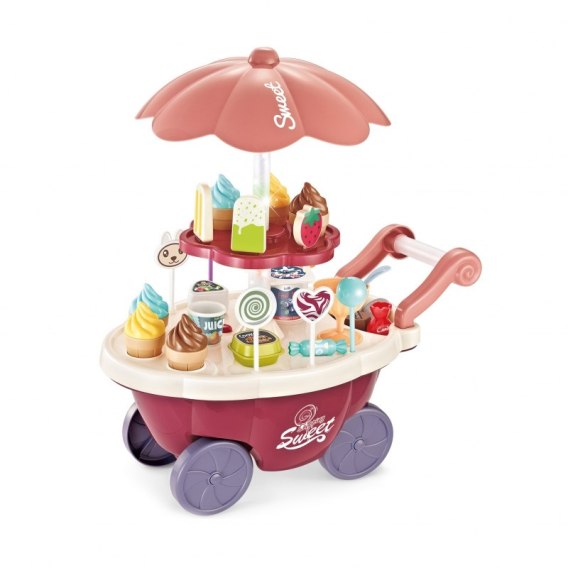 Wózek z Lodami marki Woopie będzie idealna zabawką dla Twojego maluszka i jego przyjaciół - nie tylko w upalne dni! Zabawka jest zapewnieniemkreatywnej zabawy, odgrywania ról, rozwija wyobraźnie i inne zdolności do prawidłowego rozwoju dziecka. Zabawa w "sprzedawcę" i "kupującego" pomoże rozwinąć świadomość i zdolności społeczne. Posiada wiele akcesoriów z najwyższej jakości dodatkami/naklejkami do zabawy/"sprzedaży" ze szczegółowymi modelami rożków do lodów, patyczków do lodów, lizaków lodowych, słodkich lizaków z rysunkowymi twarzami oraz innymi elementami, jak kanapki, pudełka na słodycze i przekąski, pucharki na lody, pudełko popcornów i butelka na sok. Dodatkowo niezbędnymi elementami zestawu są pieniążki, które zachęca dzieci do nauki podstawowych umiejętności matematycznych i finansowych podczas dokonywania zakupów. Oprócz bogatych dodatków posiada liczne specjalne funkcje: dźwiękowe (melodie włączane za pomocą guzika na blacie wózka), świetlne (kolorowy świecący trzon parasolki), w pełni obracająca się o 360 stopni parasolkę z półką, a samo stoisko po złożeniu parasolki i akcesoriów może przechowywać elementy wewnątrz wózka. Dzięki Orzeźwiająca i zaskakująca zabawka dla wszystkich!