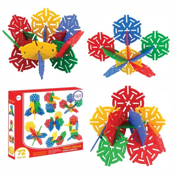 Zestaw klocków konstrukcyjnych magiczne okręgi od marki Woopie to wszystko czego dzieci potrzebują do świetnej zabawy i rozwoju zdolności umysłowych. Zestaw zawiera 72 szt. klocków wykonanych z przyjaznego materiału. Klocki są wielokolorowe i kształtem przypominają okręgi. Elementy, dziękipodłużnym otworom dają możliwość układania różnych przestrzennych konstrukcji. Układanie klocków dostarczy wiele radości oraz jest doskonałym wsparciem dla rozwoju inteligencji Twojego maluszka. Zabawka rozwija zdolności motoryczne Twojego dziecka poprzez ruch dłońmi.