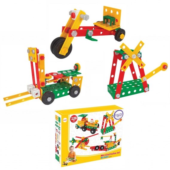 Zestaw konstrukcyjny od marki Woopie pozwoli Twojemu dziecku stać się mechanikiem, budowniczym i konstruktorem. Zestaw zawiera 128 szt. najróżniejszych elementów z przyjaznego materiału. Klocki są wielokolorowe oraz mają różne kształty oraz funkcję: klocki/blaszki, śruby, zakrętki, elementy specjalne oraz koła. Niezbędnym narzędziem do pracy dla młodego konstruktora są dwa dołączone do zestawu klucze do zakręcania oraz odkręcania śrub. Elementy dają możliwość układania różnych konstrukcji przestrzennych (w tym: pojazd, helikopter, wiatrak, statek, motorek czy wózek widłowy). Tworzenie konstrukcji dostarczy wiele radości oraz niezwykle pobudzi wyobraźnie i kreatywność Twojego maluszka. Zabawka rozwija zdolności motoryczne Twojego dziecka poprzez ruch dłońmi.