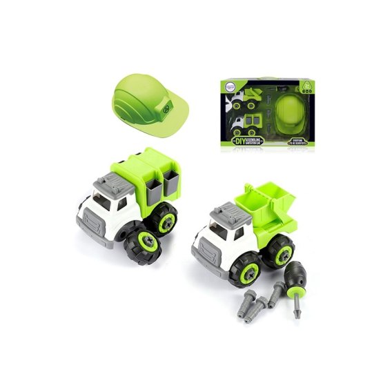 Zestaw Majsterkowicza markiWoopie pozwoli Twojemu dzieckuwcielić się w konstruktora i bawić się pojazdami bez końca! Dziecko posiada pełen zestaw do montażu m.in. kask chroniący głowę, śrubokręt oraz 3 śrubki. Do złożenia dziecko dostaje 2 pojazdy sanitarne: ciężarówkę / śmieciarkę oraz ciężarówkę / wywrotkę. Pojazdami można nie tylko składać, demontować, ale również można się nimi bawić oraz dodatkowo korzystać z funkcji jak ruchome elementy np. ruchoma przyczepa wywrotki. Zabawka rozwija zdolności motoryczne dziecka (usprawnia rączki), inteligencję, kreatywność, wyobraźnię oraz zachęca do integracji rodzic-dziecko podczas wspólnego składania.