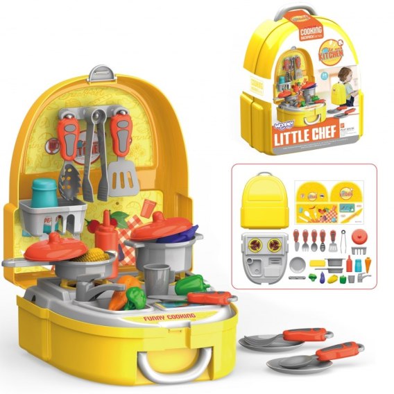 Zestaw Małego Kucharza w Plecaku od marki WOOPIE pozwoli Twojemu dziecku bawić się w szefa kuchni wszędzie i kiedy tylko zechce. Dziecko uwielbia pomagać rodzicom w kuchni, a dodatkowo rozwinąć pasję do gotowania oraz wspólnie z przyjaciółmi współpracować podczas wspólnego gotowania. Zestaw zawiera 26 el.: wszystkie potrzebne rzeczy, które posiada każdy kucharz. Zabawka pełni funkcję plecaka dzięki tasiemką na ramiona, co pozwoli zabrać wszędzie zestaw małego kucharza. Odgrywanie ról i naśladowanie rodziców rozwija świadomość Twojego dziecka oraz pobudza wyobraźnie i kreatywność.