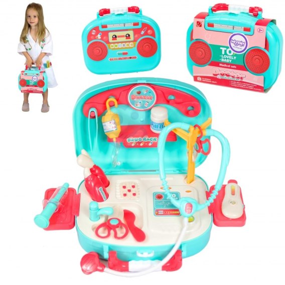 Zestaw Małego Lekarza od Woopie to marzenie każdego małego dziecka, bo kto jako mały człowiek nie chciał zostać lekarzem i wyleczyć wszystkich swoich pluszowych przyjaciół wraz z rodziną? Zestaw zawiera mnóstwo przyrządów do leczenia m.in.: stetoskop, kroplówkę, termometr i wiele innych. Wszystko to ułożone jestw walizce, który łączy funkcję sprzętu KTG. Dziecko może wcielić się w rolę doktora albo pacjenta, a bawiąc się z innymi w grupie, rozwijać umiejętności społeczno-integracyjne.