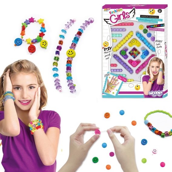 Zestaw do Robienia Biżuterii od marki WOOPIE jest stylowym, kreatywnym i zjawiskowym zestawem dla każdego dziecka. Dziecko samodzielnie może mieszać i dopasowywać różne koraliki oraz zawieszki, aby stworzyć swoja niepowtarzalna bransoletkę lub wisiorek. Dziecko może nosić bransoletkę samemu lub podarować komuś bliskiemu. Zestaw zawiera różnego rodzaju elementy: koraliki różnej wielkości, guziki, gwiazdki, uśmiechy, koraliki z literkami oraz żyłki. Komplet zapakowany jest w kolorowe pudełko idealne na prezent. Po rozpakowaniu zestaw jest łatwo przenośny jest lekki i poręczny, co sprawia, że dziecko z łatwością może go zabrać ze sobą do przedszkola, do kolegi, do ogrodu. Opakowanie, również posiada formę organizera, co pozwoli na bezpieczne przechowywanie małych elementów znajdujących się w zestawie. Zabawa w tworzenie biżuterii pozytywnie wpływa na rozwój dziecka, kształtuje jego zdolności plastyczne wraz z rozwojem wyobraźni oraz kreatywności, ćwicząc jednocześnie koncentrację; rozwija zdolności manualne/motoryczne tzw. "małą motorykę" (ruch rączek), a także przy zabawie z przyjaciółmi uczy współpracy, dzielenia się i usprawnia zdolności społeczno-integracyjne.