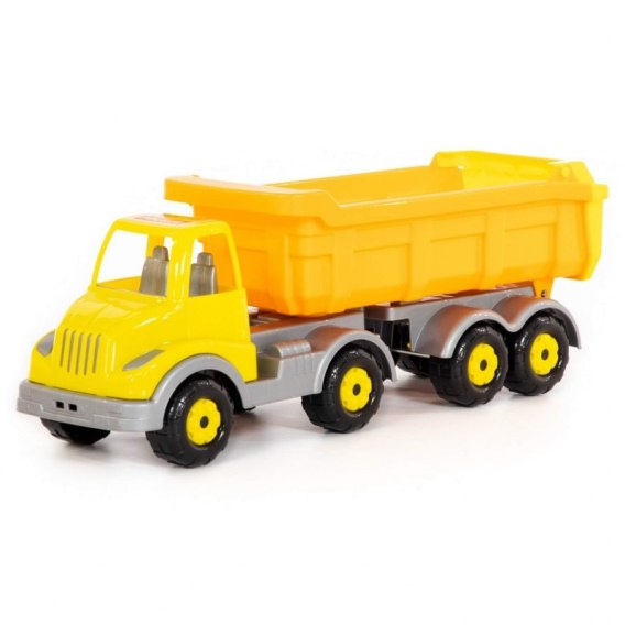Duża ciężarówka o długości 56 cm wywrotka z naczepą, od firmy Wader Quality Toys Polesie, cenionego producenta zabawek dla dzieci, to idealny pomysł na prezent. Wywrotka z naczepą to samochód składający się z dwóch części. Do szoferki dołączona jest naczepa, na której znajduje się wywrotka. Kontener ma otwieraną tylną klapę, można go unosić i opuszczać w zależności od potrzeby. Pojazd wyposażony jest w osiem szerokich kół o nierównej strukturze, które ułatwiają jazdę po nierównych nawierzchniach. Z przodu auta znajduje się miejsce na przywiązanie sznurka, dzięki czemu pojazd można ciągnąć. W kabinie kierowcy z kolei mnóstwo miejsca dla figurki ulubionego bohatera. Wykonane są z najwyższej jakości tworzywa sztucznego, co daje gwarancję trwałości i bezpieczeństwa podczas użytkowania.