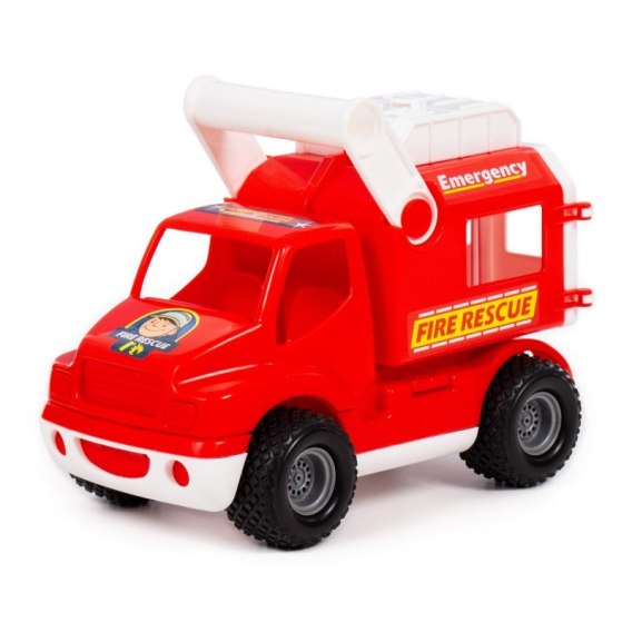 Dla małych miłośników dużych pojazdów firma Polesie Wader Quality Toys ma w swojej ofercie serię samochodów CONSTRUCK. Ich niewątpliwą zaletą jest jakość wykonania, co gwarantuje trwałość i bezpieczeństwo podczas użytkowania. Samochód STRAŻ POŻARNA wyposażony jest w cztery szerokie, gumowe koła. Ich struktura jest chropowata, co ułatwia jazdę po różnego rodzaju nawierzchniach, trawa, piasek. Naczepę można podnieść, w czym pomoże specjalnie przymocowana do niej rączka. Tylna klapa jest otwierana, dzięki czemu dziecko bez trudu umieści w niej ulubione figurki bądź inne akcesoria. Dla bohaterów odgrywanych scenek maluch znajdzie również miejsce w kabinie kierowcy.