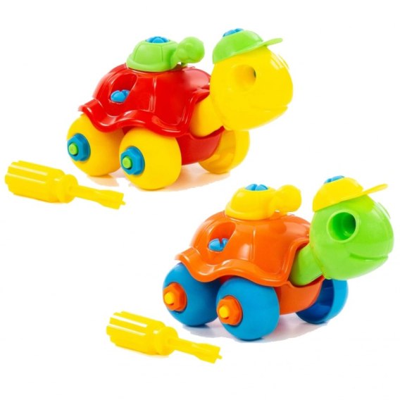 Kolorowy Żółwik od znanej i cenionej firmy Wader QT to idealna zabawka, aby wprowadzić malucha w świat małego majsterkowicza. Przeznaczona dla dzieci od 3 roku życia. Zestaw zawiera śrubokręt do skręcania i rozkręcania ruchomych elementów pojazdu. Zabawka rozwija zdolności manualne dziecka i pobudza jego wyobraźnię. Całość wykonana z wysokiej jakości materiałów bezpiecznych dla dzieci.