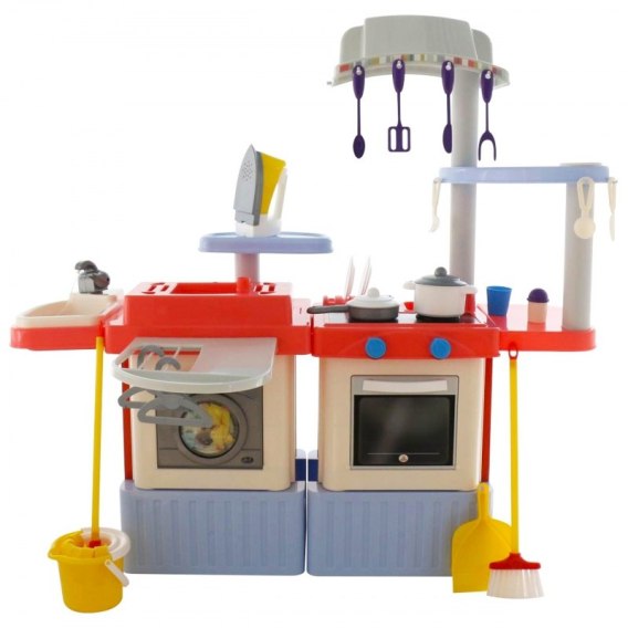 Kuchnia z Zestawem Sprzątającym od znanej i cenionej firmy Wader QT to idealna propozycja na prezent. Rozbudowany zestaw posiada m.in.: pralkę, kuchnię, piekarnik, deskę do prasowania, zlew z kranem, płytę indukcyjna, żelazko, mopa i wiele innych. Idealny zestaw dla małych gosposi, które uwielbiają naśladować swoich rodziców. Będzieidealnym dopełnieniem kącika zabaw w domu lub przedszkolu.
