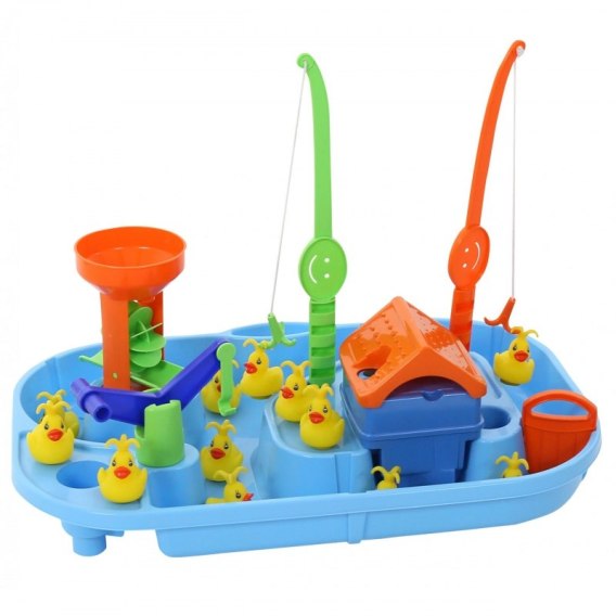 Stół Wodny dla dzieci złap kaczuszkę, od firmy Wader QT, renomowanego producenta zabawek dla dzieci. Wader Quality Toys tor wodny łączą w sobie zabawę z przyjemnością obcowania z wodą. W zestawie znajdują się 2 wędki z haczykami oraz 12 kaczuszek. Spróbuj je złowić! Do tego zestaw zawiera przegrody, żuraw a także kołowrotek. Stół wodny wyposażony w ruchome elementy, które uatrakcyjnią zabawę. Dziecko może wlewać wodę do zabawek dołączonych do stolika, zagradzać korytarze wodne.